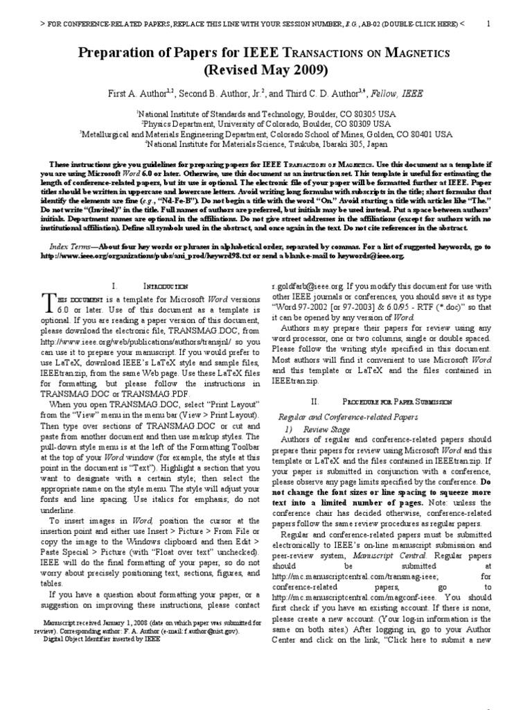 Click format and then click style. Every word in a title must be capitalized except for short minor words such as a, an, and, as, at, by, for, from, if, in, into, on, or, of, the, to, with. Your color graphic will be converted to grayscale if no separate grayscale file is provided. Our main objective is that these ieee paper template word photos gallery can be a guide for you, deliver you more references and also make you have a great day. Most of the formatting instructions in this document have been compiled by causal productions from the ieee latex style files.